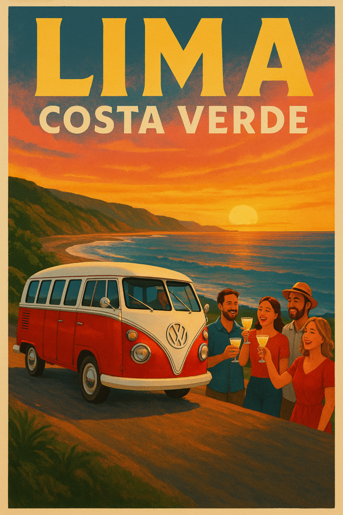Descubre la magia de Lima al atardecer. Recorre la Costa Verde en nuestra kombi vintage, disfruta una cata guiada de Pisco Sour, maridaje con piqueos...